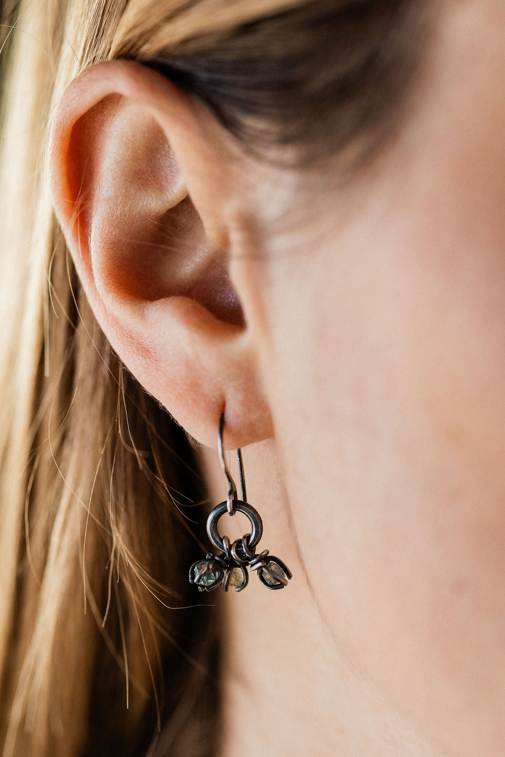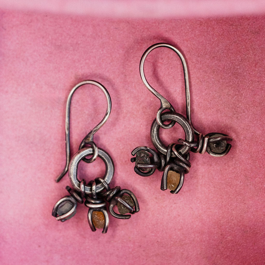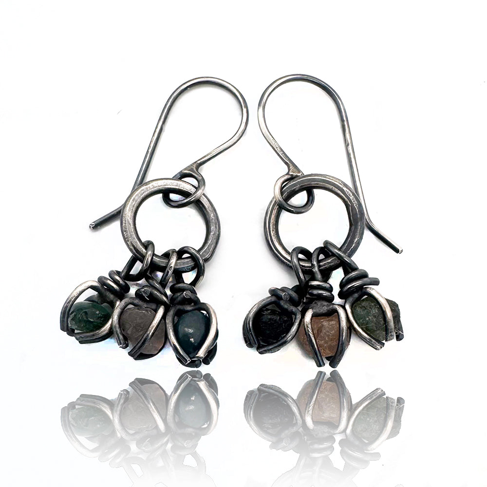 Montana sapphires, "fancies", range from blue to green to yellow to pink. Each pair of these elegant dangles highlights a subtle selection of hues.