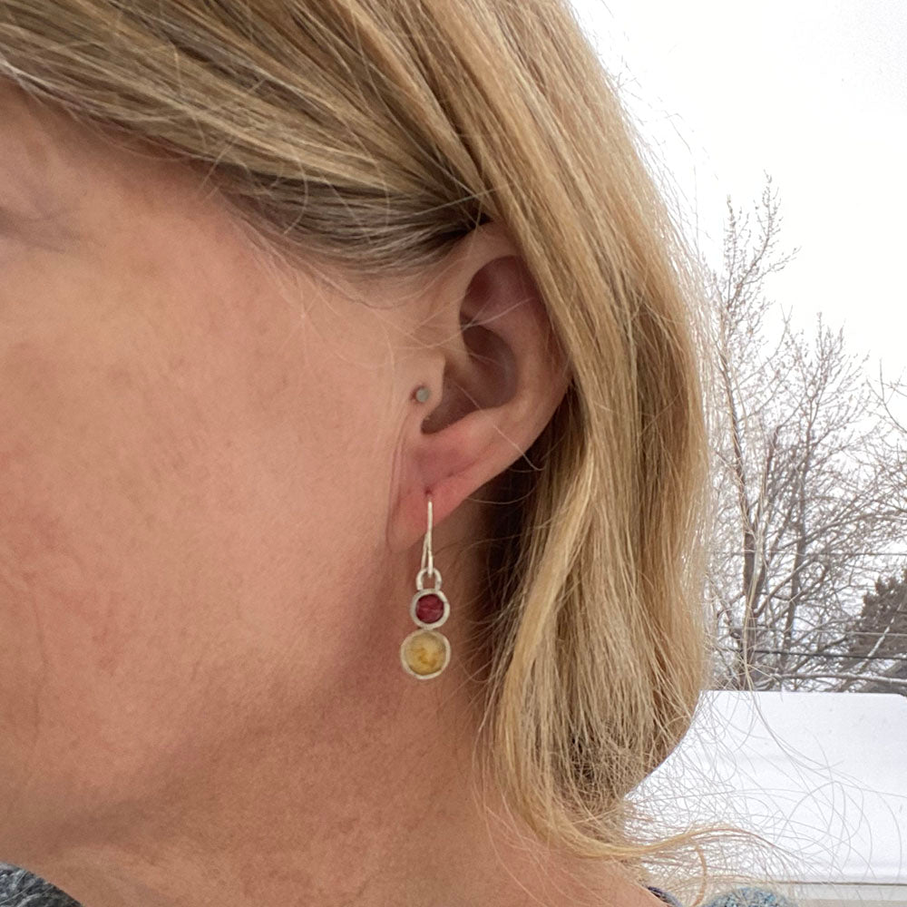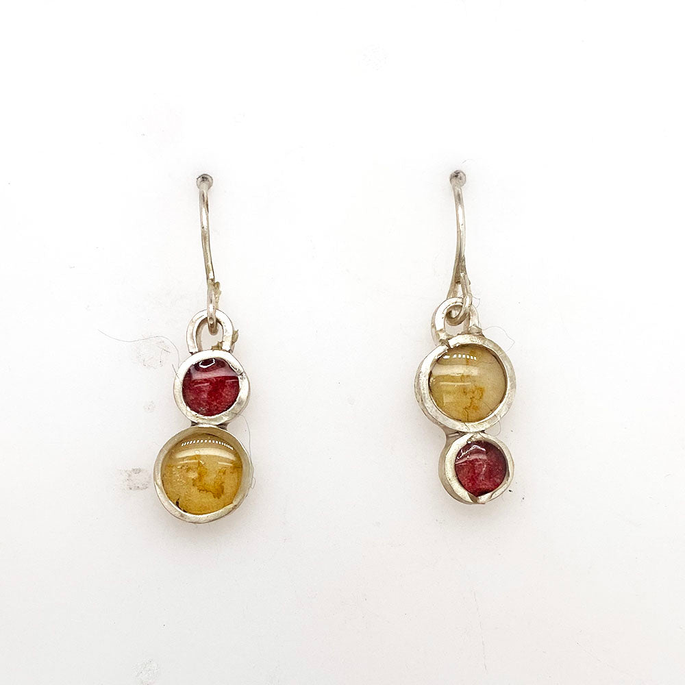 Quirky and whimsical, these colorful dangles have flip-flopped colors and circles to keep things lively.