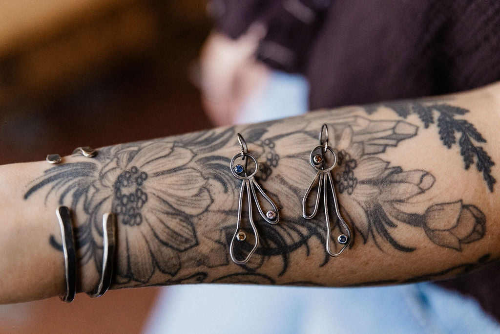 The alpine lily earrings have been a staple in my collection. Now they're here in a new iteration with the added sparkle of colorful sapphires!