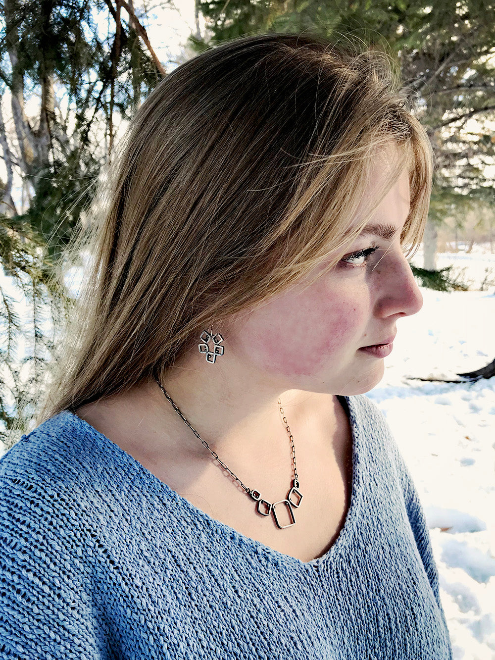 Mini sterling squares are circled round into a pair of unique statement earrings.