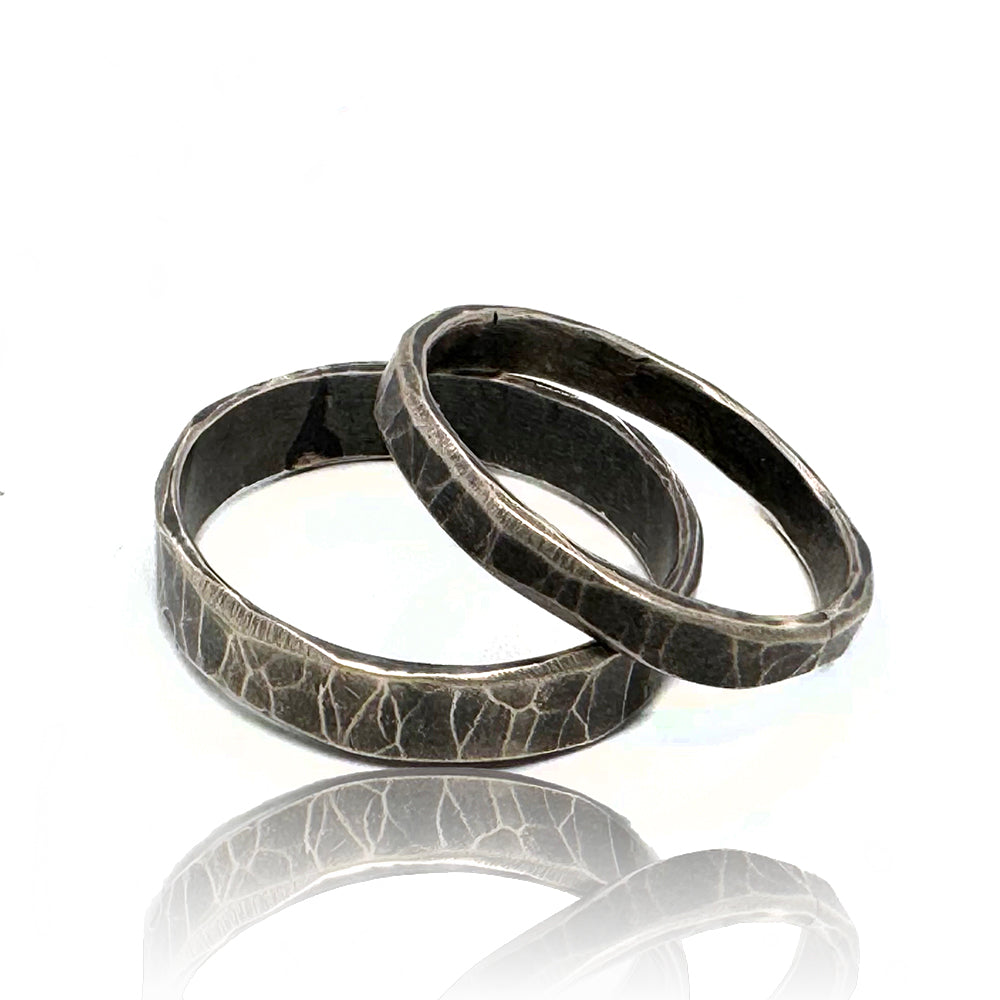 Oxidized silver shows the character of the hammer marks. Hand-forged and made to enjoy every day.