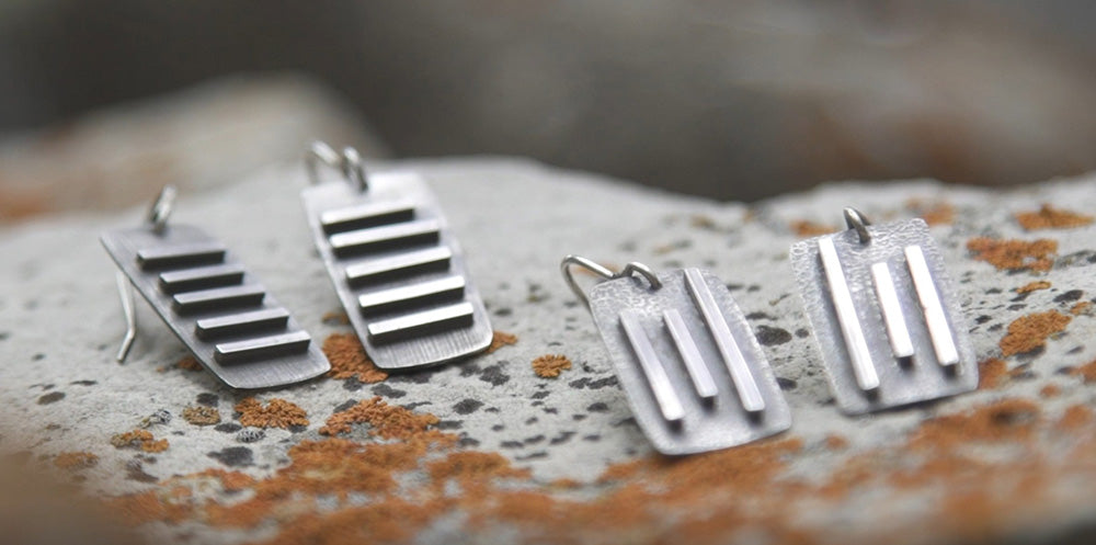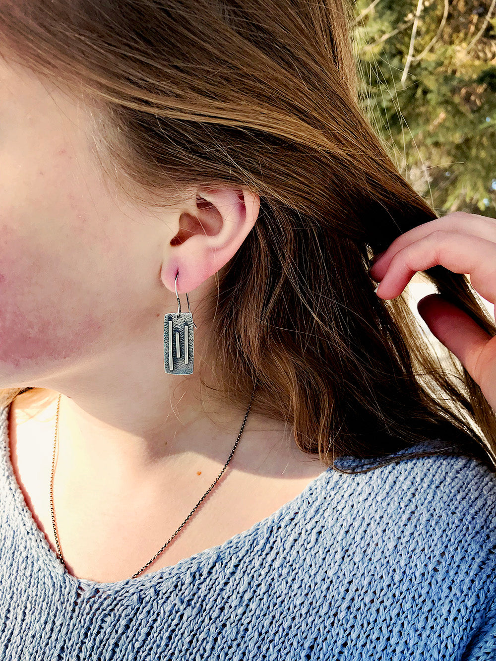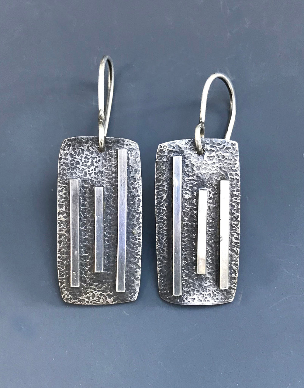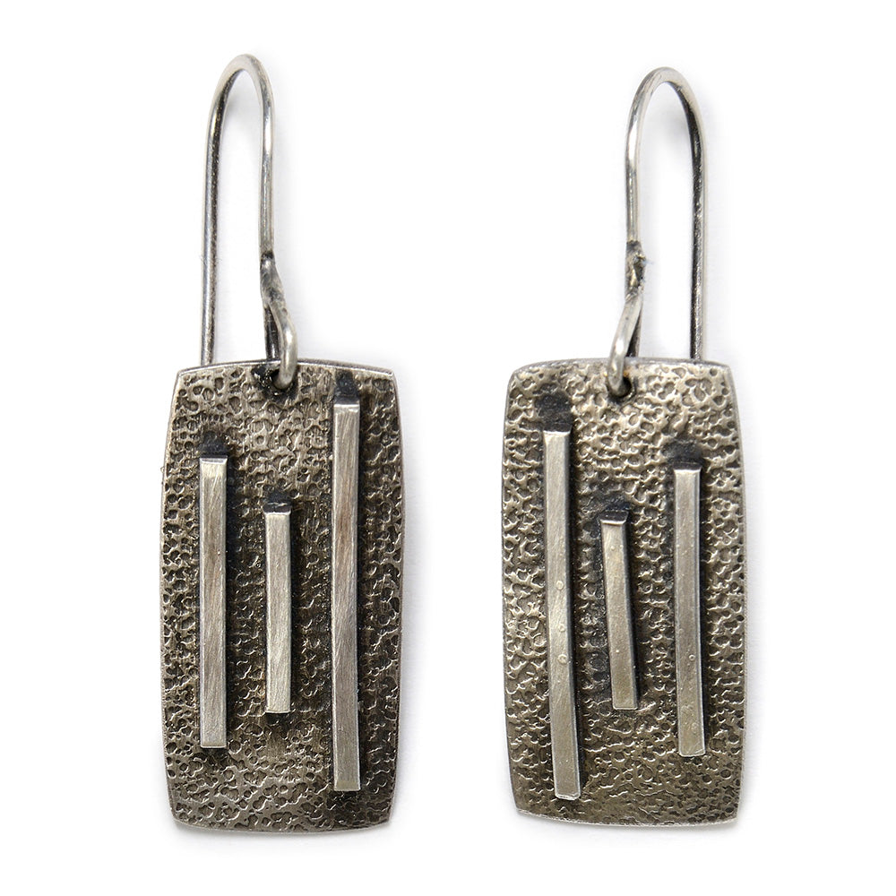 Contemporary earrings in oxidized silver.