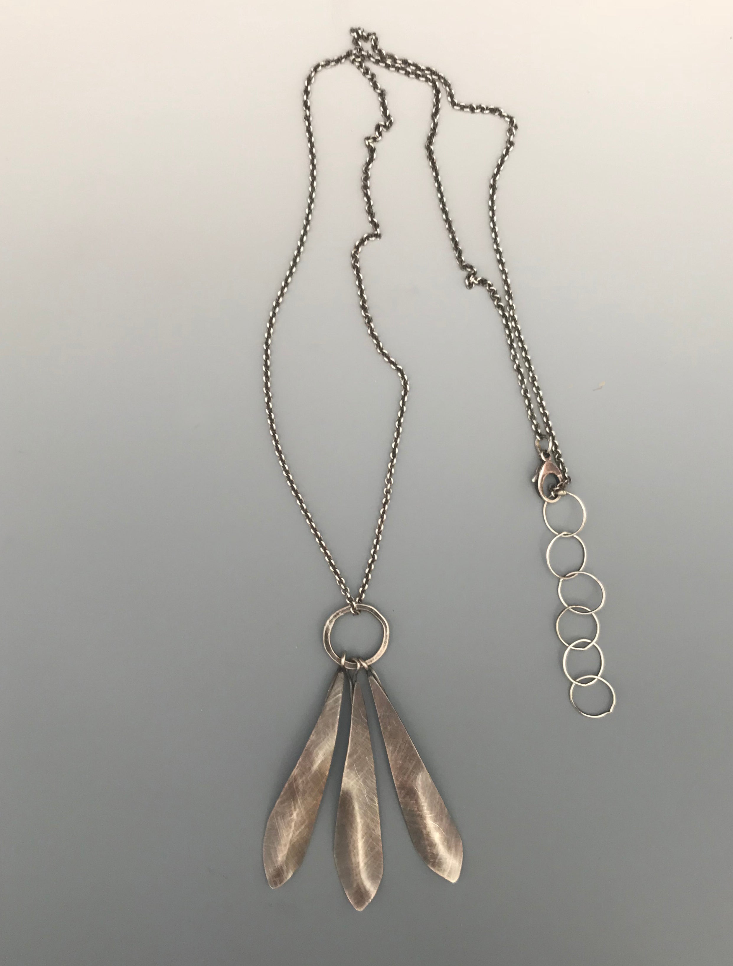 Hand-forged from recycled sterling silver, hung from a 20 inch sterling chain with a 2-inch extension, and treated with a patina for a well-worn, vintage look.
