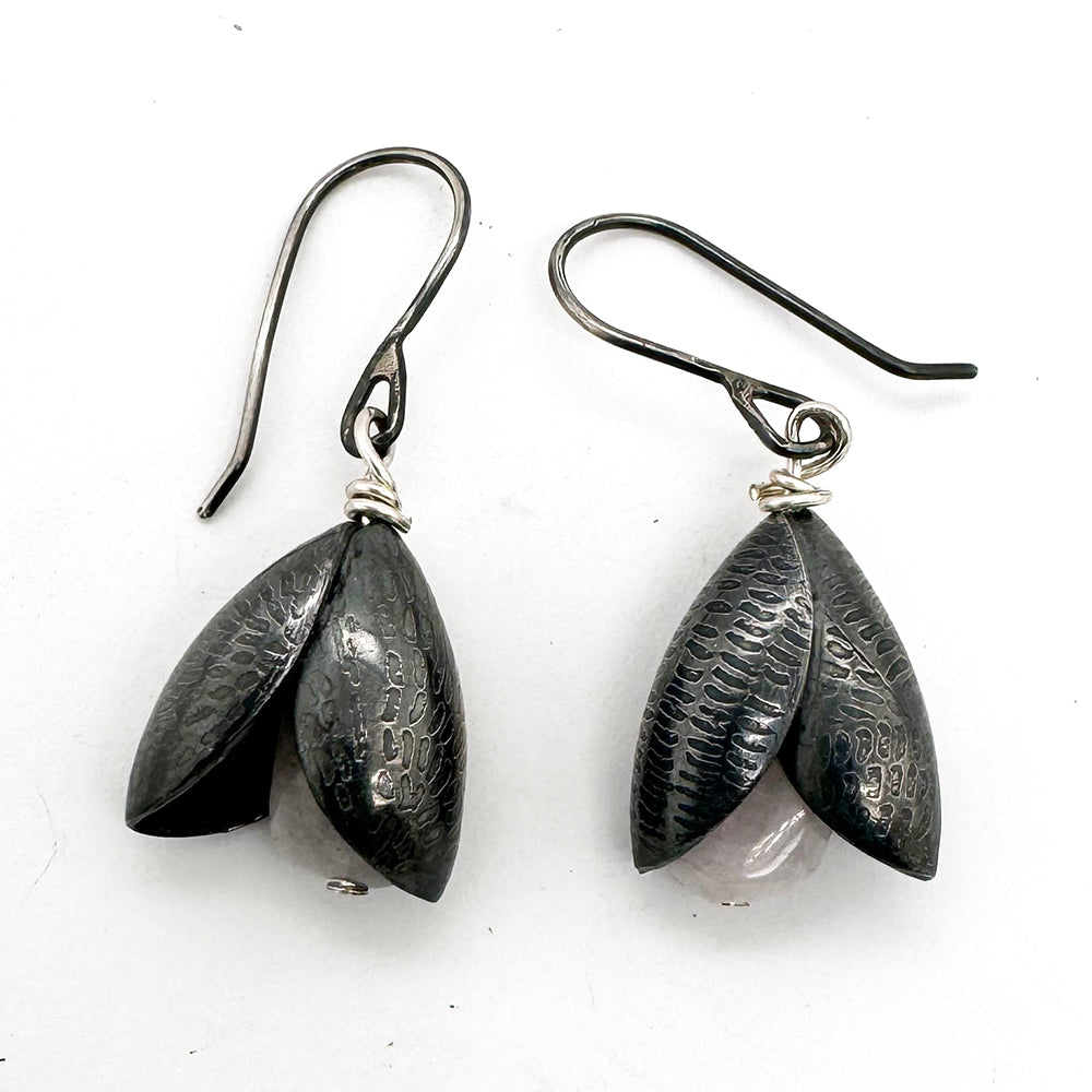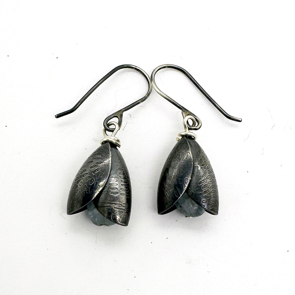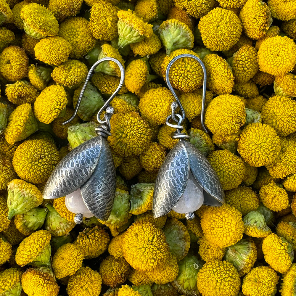 Organically-shaped gemstones peek between the petals of these enchanting, feminine earrings.