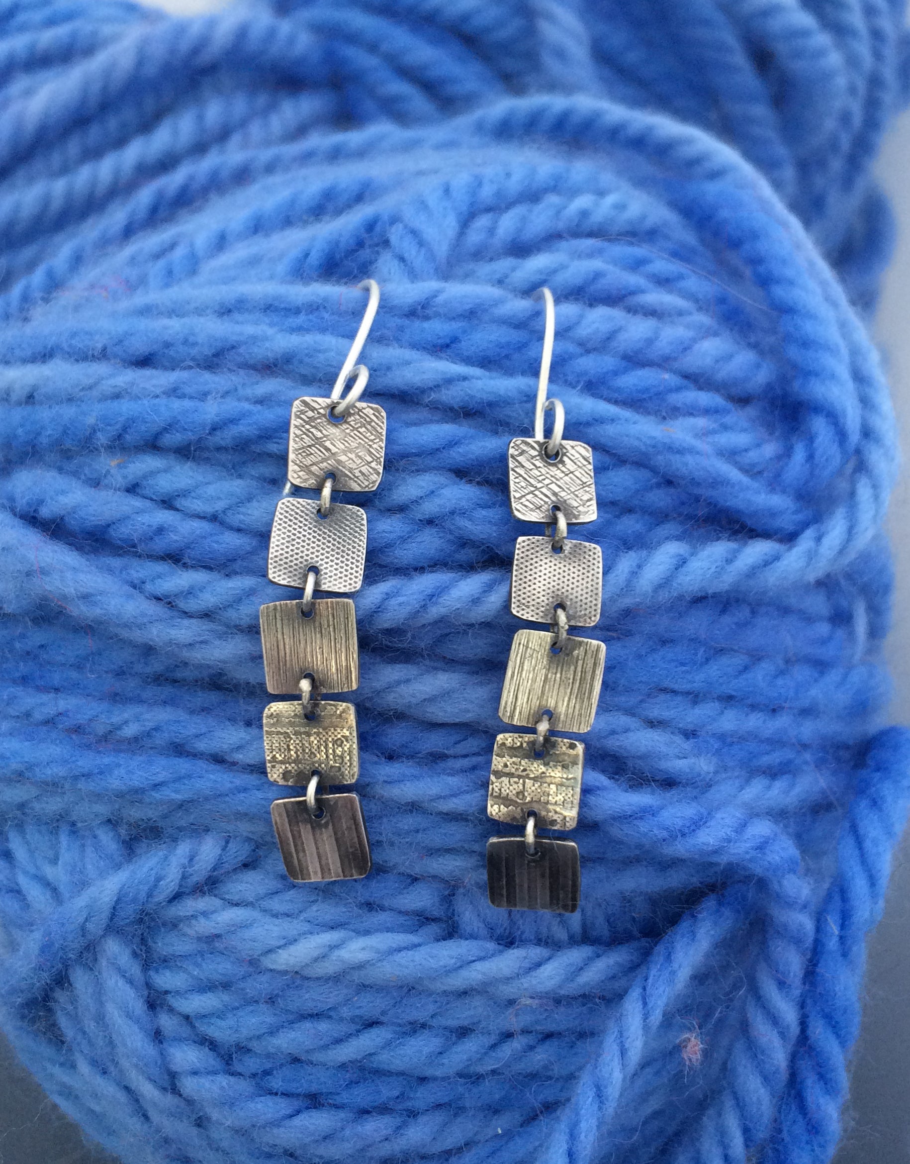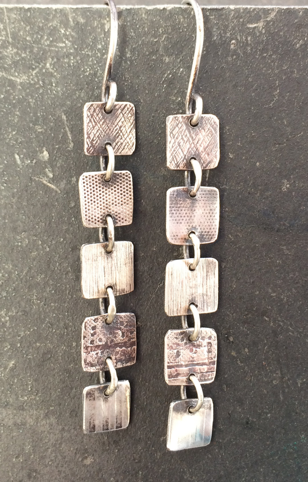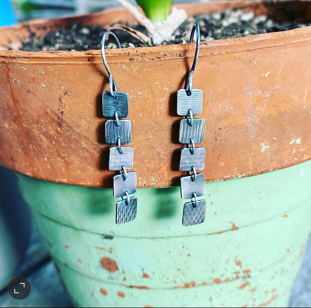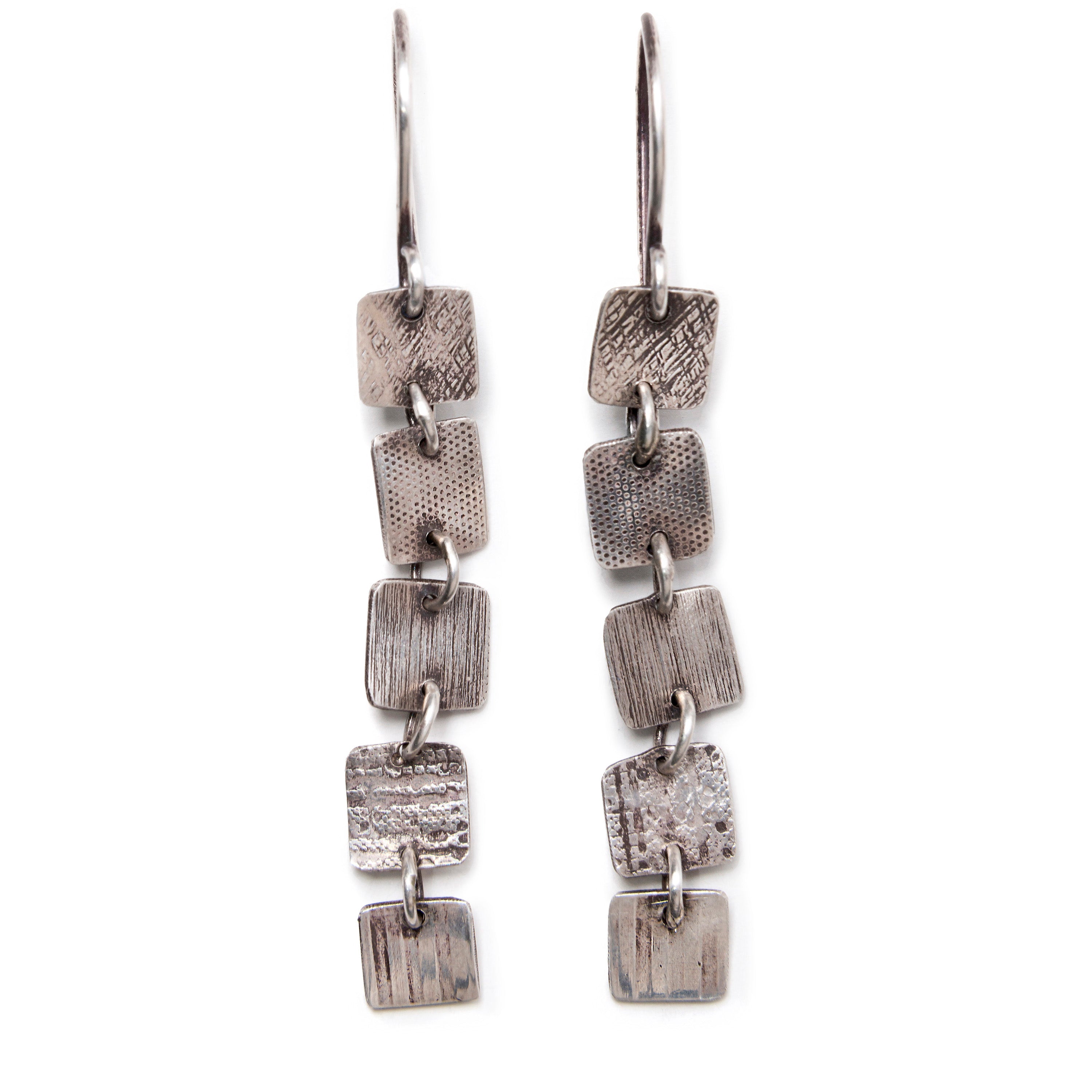 Five tiny forged squares in oxidized sterling make up these stunning earrings.
