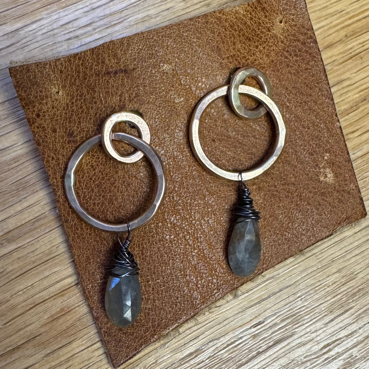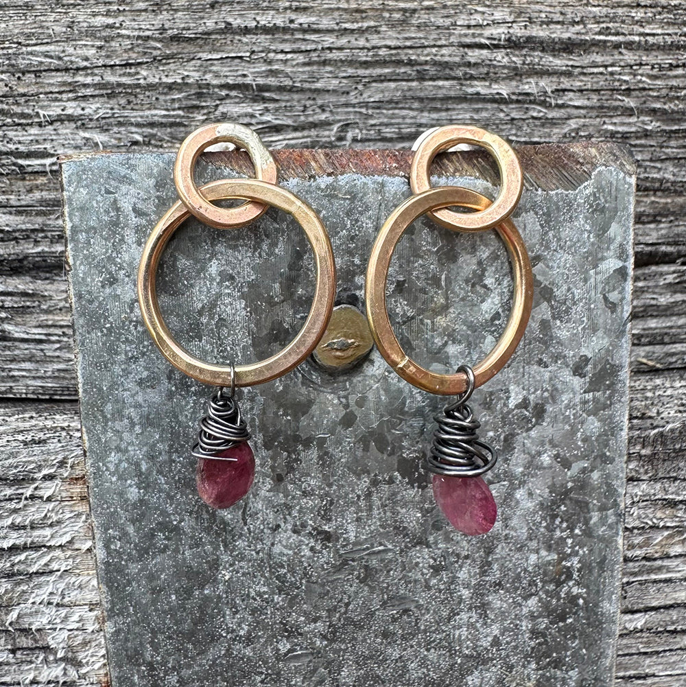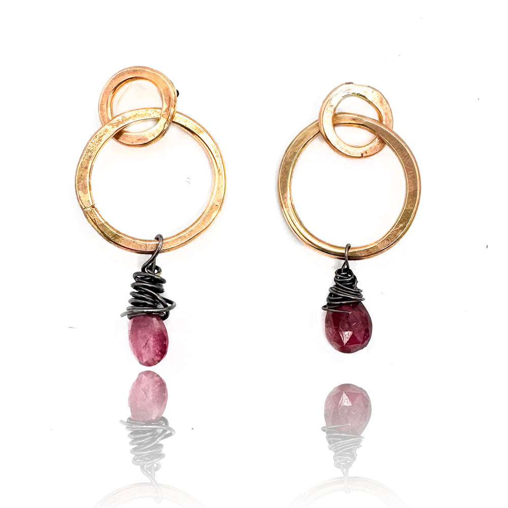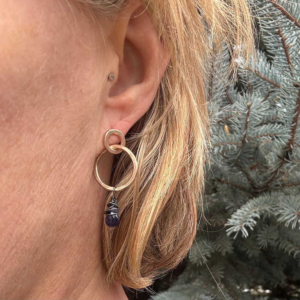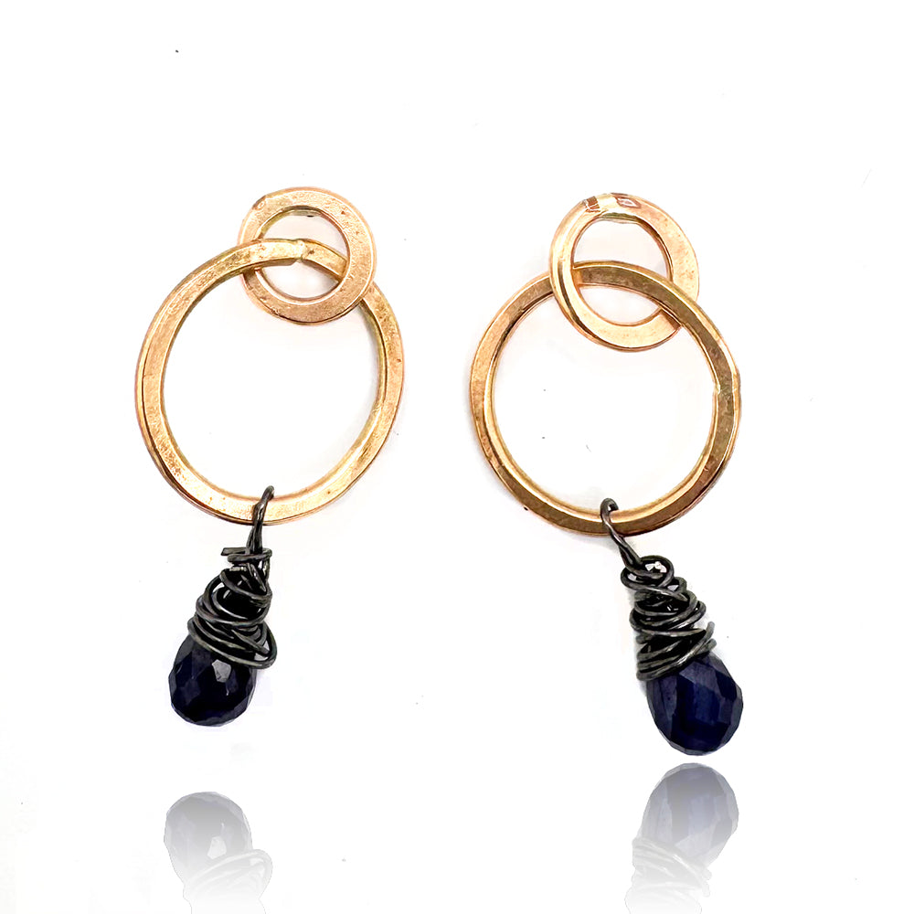 Smaller circles with posts allow the larger hoops to dangle gracefully. Gold-filled wire is hand-forged for a lovely, organic look.