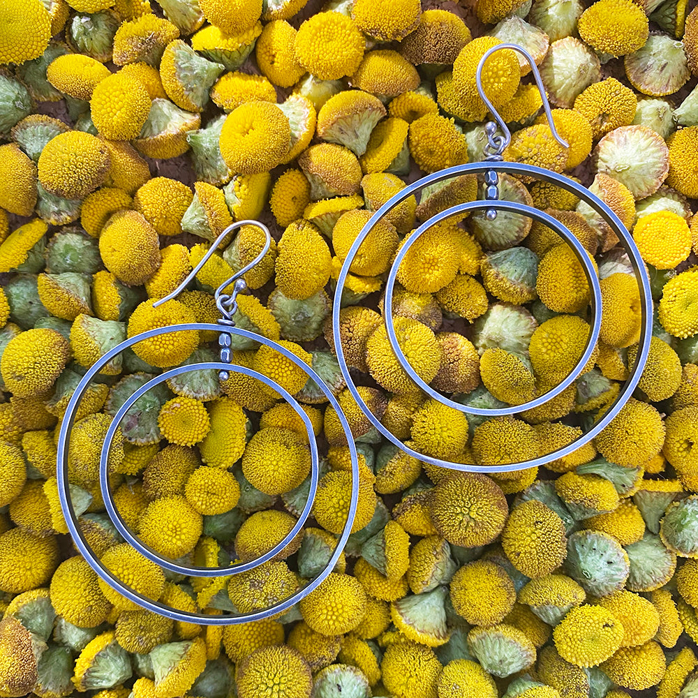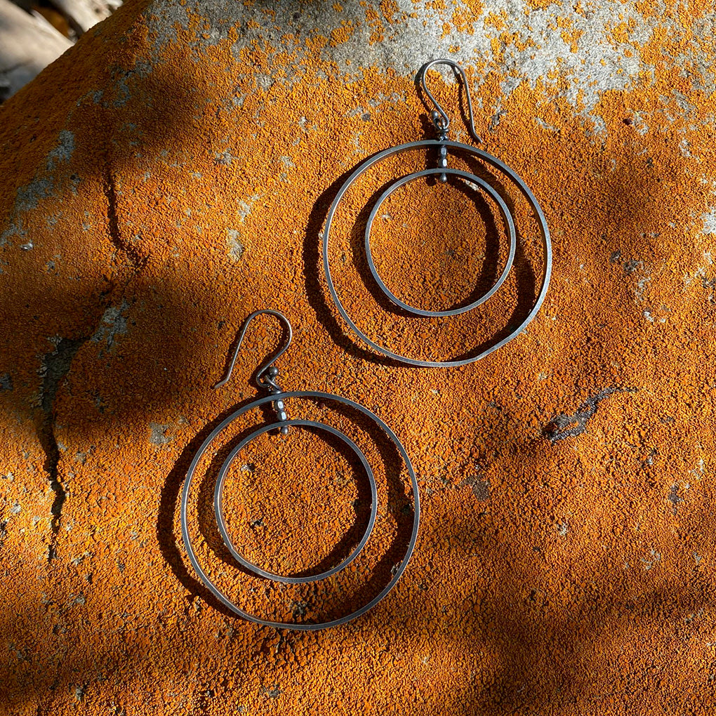 Hand-fabricated from recycled sterling silver. Oxidized with a patina and lightly polished to catch the light as they spin.