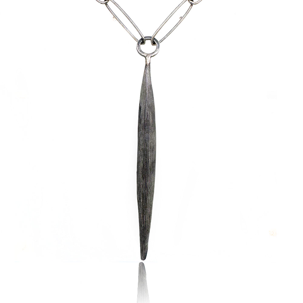 Elegant in it's simple lines, this contemporary necklace features a long, hollow pod.