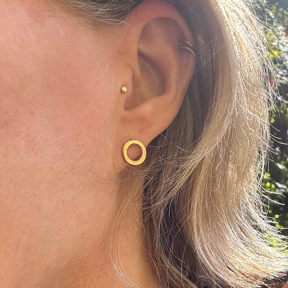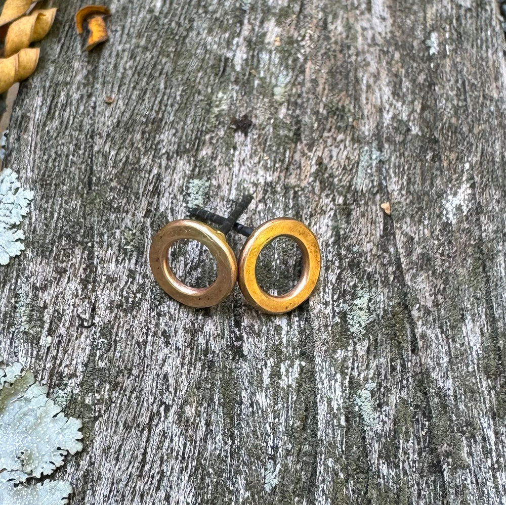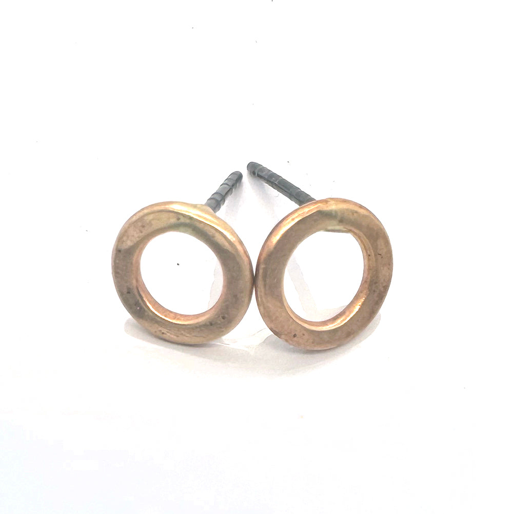 Simple, understated elegance. Hand-forged gold post earrings fashioned from hammered, gold fill or 14 karat gold. Posts and backs are sterling silver.