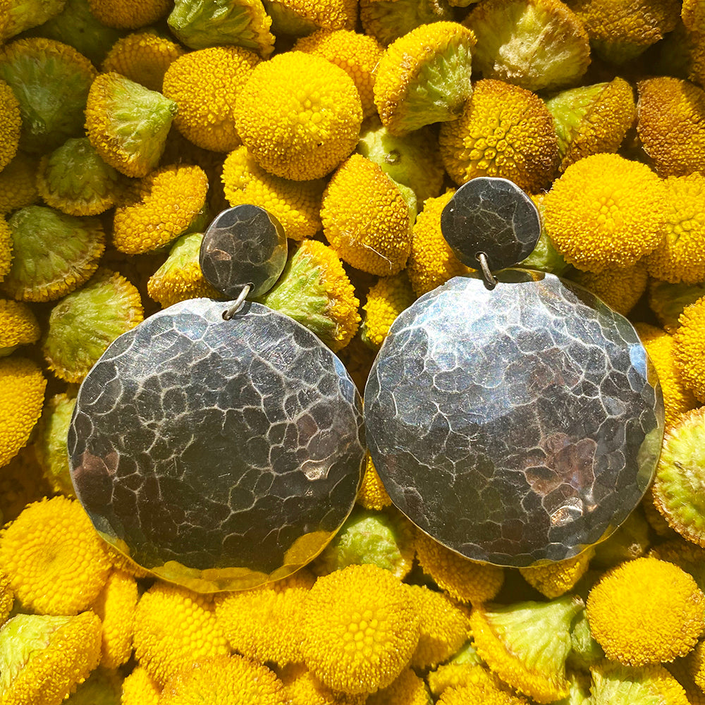 Hammered sterling silver post earrings with sassy sway.