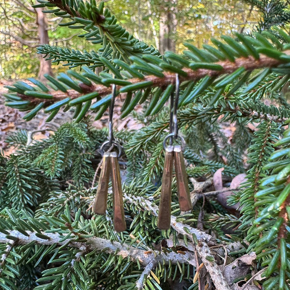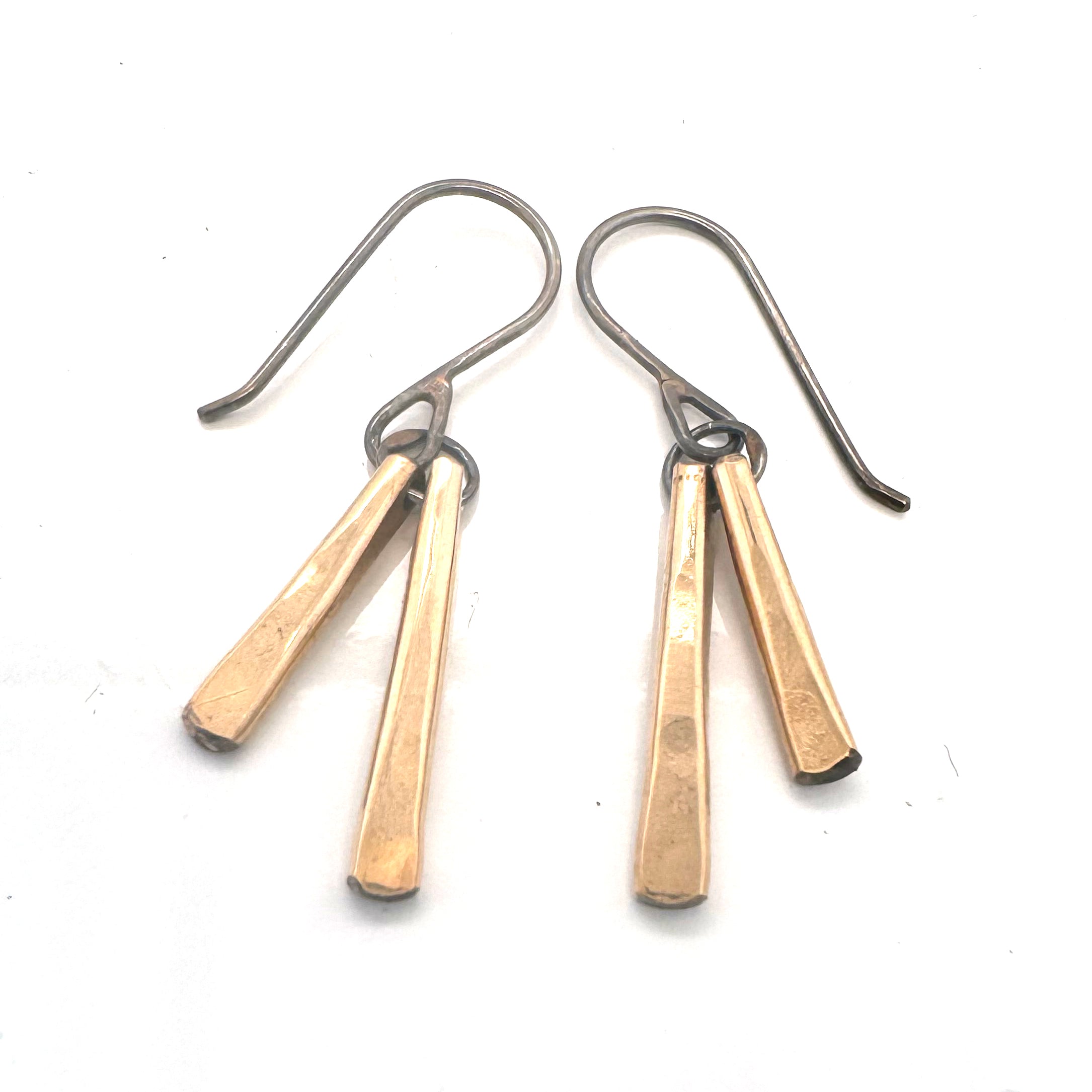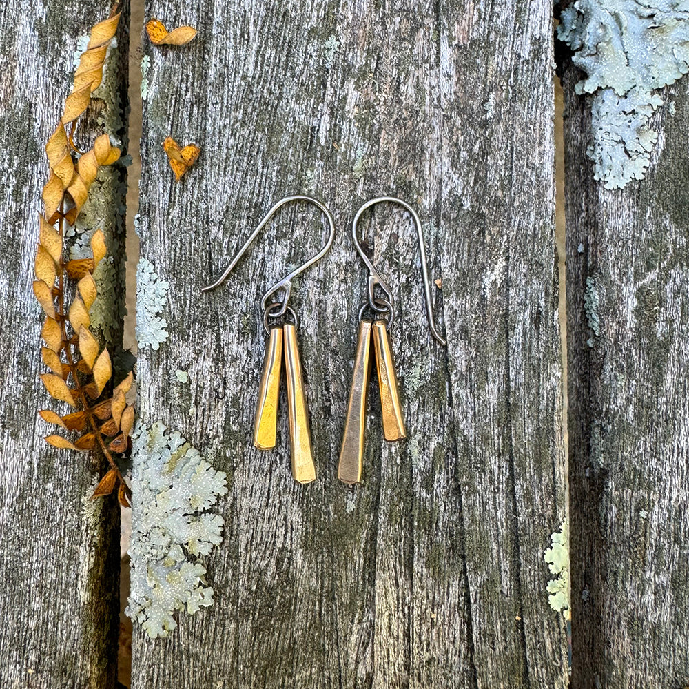 Two hammered gold wedges sway gently from handcrafted sterling ear wires. Choose between gold-fill and 14 karat gold.